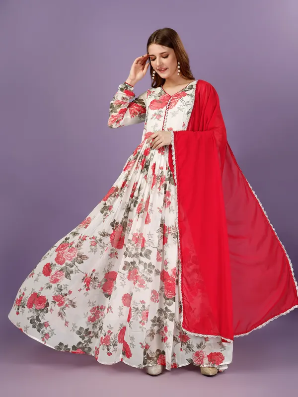 Fiesta Bloom Red & White Floral MexiDress with Dupatta